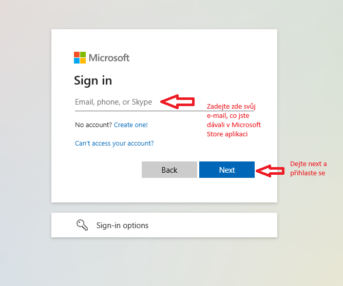 Pokud jste již registrovaní v Microsoft Store, tak stačí přejít na bod 2.
