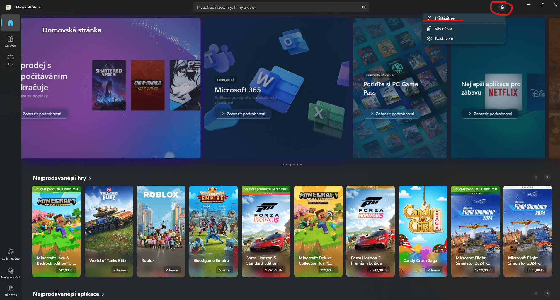1. Přihlášení do Microsoft Store